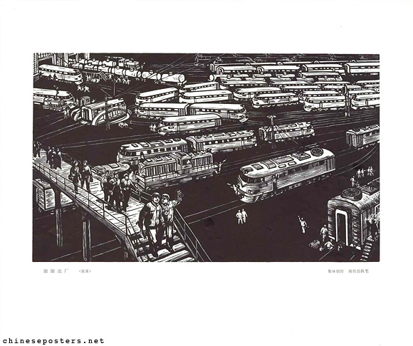 源源出厂 (版画) Yuanyuan chuchang (Banhua) Designer Hu Chuanzhi (胡传治) Date ca. 1972 Publisher Publisher unknown Size 32x38.5 cm. Call nr. BG D12/740 Collection IISH collection Notes The impressum states: Collective creation, 'written' by Hu Chuanzhi (集体创作胡传治执笔). Link to IISH catalog https://search.iisg.amsterdam/Record/830624