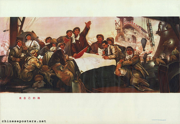 走自己的路 Zou zijide lu Designer Liaoning Province Mao Zedong Thought Exhibition Hall Creative Group (辽宁省毛泽东思想宣传馆创作组) Date 1972, July Publisher Liaoning renmin chubanshe (辽宁人民出版社) Size 54x78 cm. Call nr. BG E16/315 Collection IISH collection Link to IISH catalog https://search.iisg.amsterdam/Record/1042036