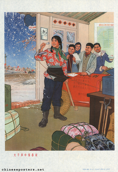 大干声中催春来 Dagan sheng zhong cui chun lai Designer Gu Yongyao (股永耀) Mao Guolun (毛国伦) Date 1976, September Publisher Shanghai renmin chubanshe (上海人民出版社) Size 77x53 cm. Call nr. BG E39/353 Collection IISH collection Notes The impressum of the 1976 poster states that Gu Yongyao is from Zhangze Commune, Songjiang County (松江县张泽公社). Link to IISH catalog https://search.iisg.amsterdam/Record/1285708