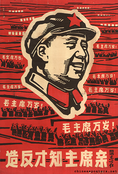 造反才知主席亲 Zaofan cai zhi zhuxi qin Designer Designer unknown (未知) Date 1966-1967 Publisher Tongji "The East is Red" (同济东方红), Shanghai Size 77x53 cm. Call nr. BG E39/558 Collection IISH collection Notes Mao's portrait hovering above a sea of red banners with the slogan 毛主席万岁! - Long live Chairman Mao - and figures wearing armbands and waving Little Red Books. Published by a group at Tongji University, Shanghai. Theme Cultural Revolution Campaigns (1966-1976) The Mao Cult Link to IISH catalog https://search.iisg.amsterdam/Record/1286882