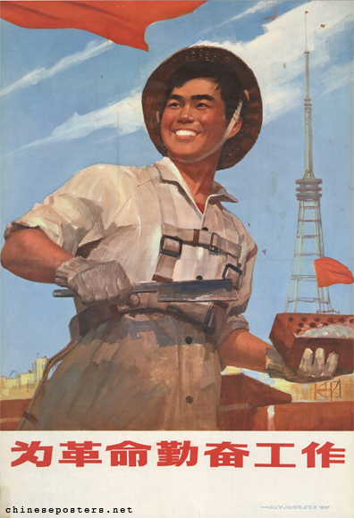 为革命勤奋工作 Wei geming qinfen gongzuo Designer Zhao Weiliang (赵渭凉) Date 1973, June Publisher Shanghai renmin chubanshe (上海人民出版社) Size 77x53 cm. Call nr. BG E39/668 Collection IISH collection Link to IISH catalog https://search.iisg.amsterdam/Record/1287665