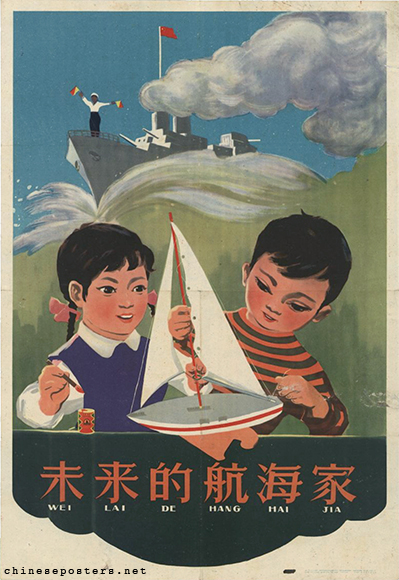 未来的航海家 Weilai de hanghaijia Designer He Yanrong (何艳荣) Date 1960, May Publisher Shanghai renmin meishu chubanshe (上海人民美术出版社) Size 77x53 cm. Call nr. BG E39/730 Collection IISH collection Notes On our copy of this poster, the name of the designer was made illegible. Theme People's Liberation Army Navy Link to IISH catalog https://search.iisg.amsterdam/Record/1287993