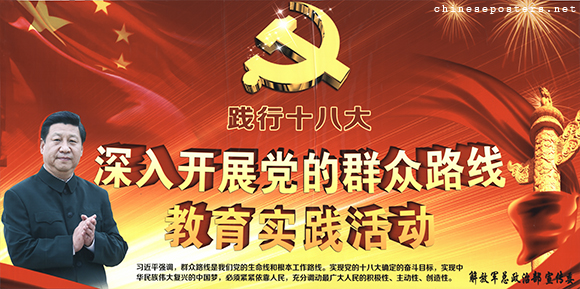 践行十八大 - 深入开展党的群众路线教育实践活动 Jianxing shibada - shenru kaizhan dangde qunzhong luxian jiaoyu shjian huodong Designer Designer unknown (未知) Date 2013 Publisher Jiefangjun zong zhengzhibu xuanchuanwei (解放军总政治部宣传委) Size 55x110 cm. Call nr. BG L4/617 Collection Landsberger collection Notes Published by the Propaganda Committee of the General Political Department of the People's Liberation Army, intended for internal (内部) use only. Theme Xi Jinping People's Liberation Army Link to IISH catalog https://search.iisg.amsterdam/Record/1495950