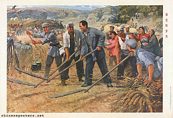 难忘的岁月 Nanwangde suiyue Designer Shang Dezhou (尚德周) Date 1978, January Publisher Shanghai renmin meishu chubanshe (上海人民美术出版社) Size 53x77 cm. Call nr. BG E16/285 Collection IISH collection Notes A fantasy image of Mao threshing grain together with peasants and soldiers in Yan'an. Theme Yan'an Link to IISH catalog https://search.iisg.amsterdam/Record/1067354